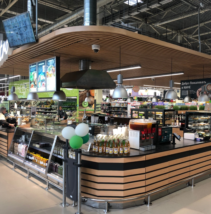 Спроектировали и создали отдел готовой еды в формате open-kitchen.