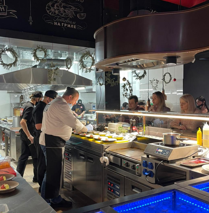 Организация многофункционального острова, сочетающего: кулинарию, food-to-go, барную зону, show-kitchen, зону посадки.